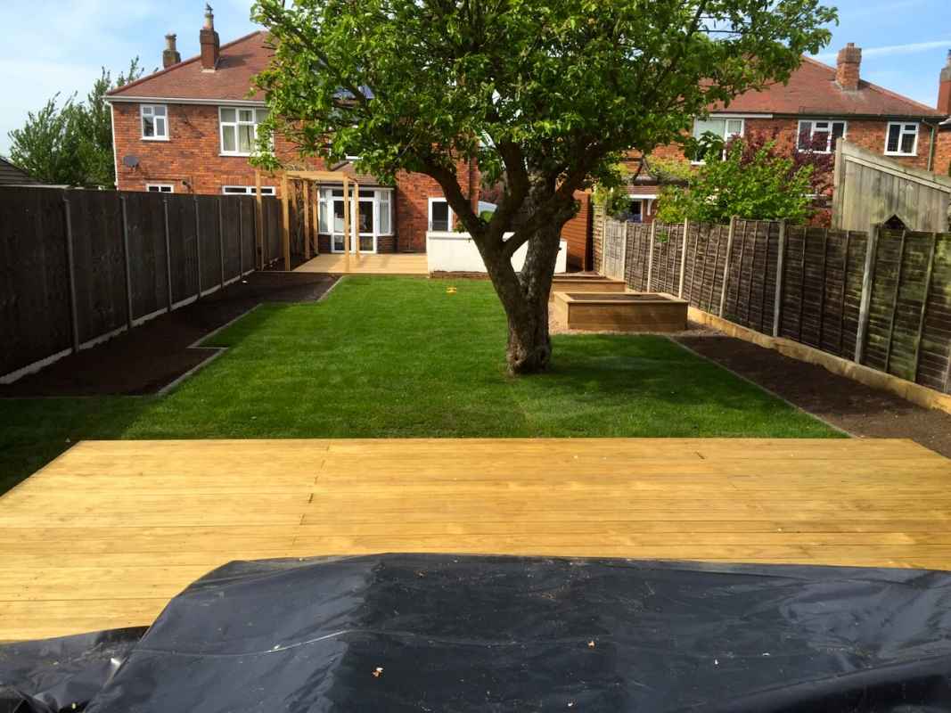 All of the planting areas were edged so that mowing was as easy as possible then the rest of the garden levelled turfed using Q-Lawn. At the back we used kiln dry decking to create a base for a summer house to eventually be built onto.